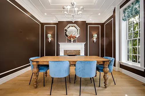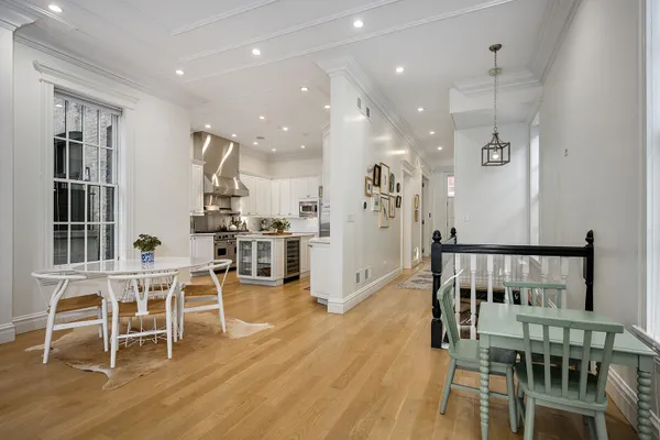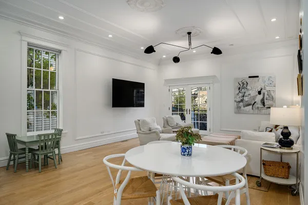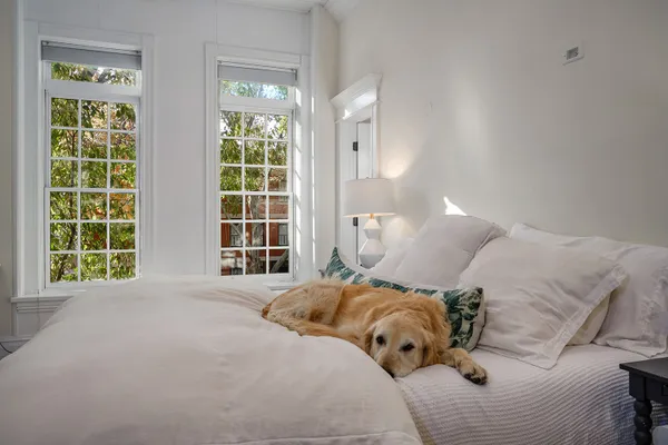 Flooded with southern light, the gracious entry welcomes guests with a custom tile foyer and grand staircase. The spacious dining room with a beautiful fireplace provides the perfect entertaining area for friends and family. The chef’s kitchen is both classic and functional, featuring white cabinetry, quartz countertops, and professional grade appliances with direct access via a new steel walkway to the custom attached garage roof deck. A large family room with tons of windows and natural light open to the kitchen makes a perfect family space.
