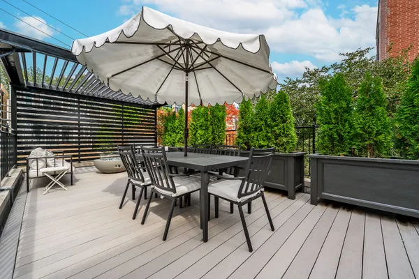 Large double doors open directly to the backyard, creating more effortless indoor-outdoor living. Outdoor spaces abound, including a private, beautifully hardscaped backyard with ivy covered walls walls, and multi level above-garage custom deck with fire pit. An attached garage for one car, with lots of storage room for bikes and outdoor toys. Ideally located in the heart of Lincoln Park, just steps from DePaul University, Jonquil Park, Oscar Mayer School, public transportation, restaurants, shopping, and everything this vibrant neighborhood has to offer.